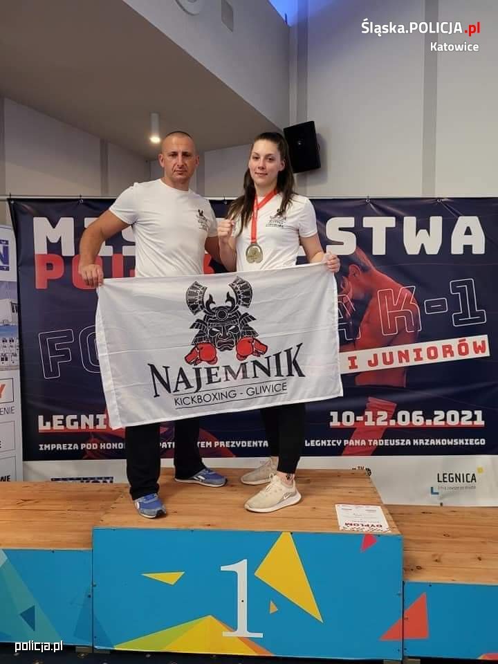 Post. Justyna Ciborska, chociaż ma zaledwie 21 lat, to jest już utytułowaną zawodniczką. 12-krotnie zdobyła Mistrzostwo Polski w Kickboxingu. Katowicka policjantka w 2018 roku w formule low kick wygrała dwie najważniejsze imprezy sportowe i zdobyła Mistrzostwo Europy i Mistrzostwo Świata w Kickboxingu w kategorii wagowej 70+. W 2019 roku zdobyła III miejsce na Mistrzostwach Świata w Kickboxingu w formule low kick, które odbyły się w Bośni i Hercegowinie. Pomimo trudnej sytuacji wywołanej pandemią i brakiem sponsora, post. Justyna Ciborska cały swój wolny czas poświęca ciężkim treningom, doskonaląc swoje umiejętności sportowe. Pod czujnym okiem trenera Bartłomieja Pawlusa już od 10 lat trenuje w GKWW Najemnik Gliwice. Jej ciężka praca i rewelacyjne wyniki osiągane na zawodach gwarantują jej już od 6 lat powołanie do Kadry Narodowej Polski. W tym roku takie powołania zagwarantowała sobie już dwukrotnie, zdobywając w kwietniu II miejsce podczas Mistrzostw Polski w Kikcboxingu w formule low kick w kategorii +70 kg Senior, które odbyły się w Mysłowicach. Drugi raz w tym roku powołanie do Kadry Narodowej Polski wywalczyła na Mistrzostwa Świata w Kickboxingu we Włoszech, podczas Mistrzostw Polski w Kickboxingu w formule K1 / Senior +70 kg. Tam w walce finałowej post..Justyna Ciborska zdobyła mistrzostwo, pokonując swoją rywalkę Pauline Badowską.