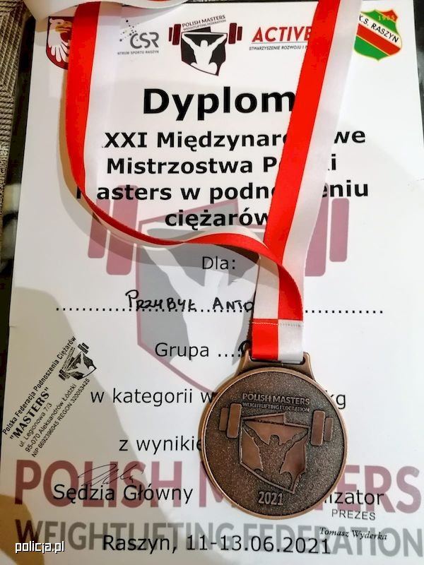 Funkcjonariusz Ruchu Drogowego Komendy Miejskiej Policji w Gdańsku post. Antoni Przybył, zdobył brązowy medal w Mistrzostwach Polski w podnoszeniu ciężarów. I choć kontuzja, której doznał kilka miesięcy wcześniej, nie pozwoliła mu tym razem wywalczyć złota, to odniósł jeszcze inny sukces. Odegrał kluczową rolę trenera, a dwie zawodniczki, które przygotowywał nasz funkcjonariusz, zdobyły tytuły Mistrzyni Polski i Wicemistrzyni Polski.
