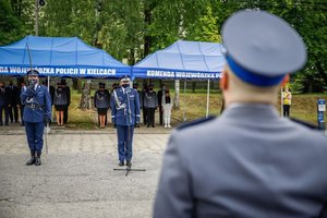 Tradycyjnie, na początku zbiórki Komendant Wojewódzki Policji w Kielcach nadinsp. dr Jarosław Kaleta przyjął meldunek złożony przez dowódcę uroczystości. Po przeglądzie pododdziałów przez Pana Generała i przywitaniu funkcjonariuszy nastąpiło uroczyste podniesienie flagi państwowej i wybrzmiał Hymn Rzeczypospolitej Polskiej.