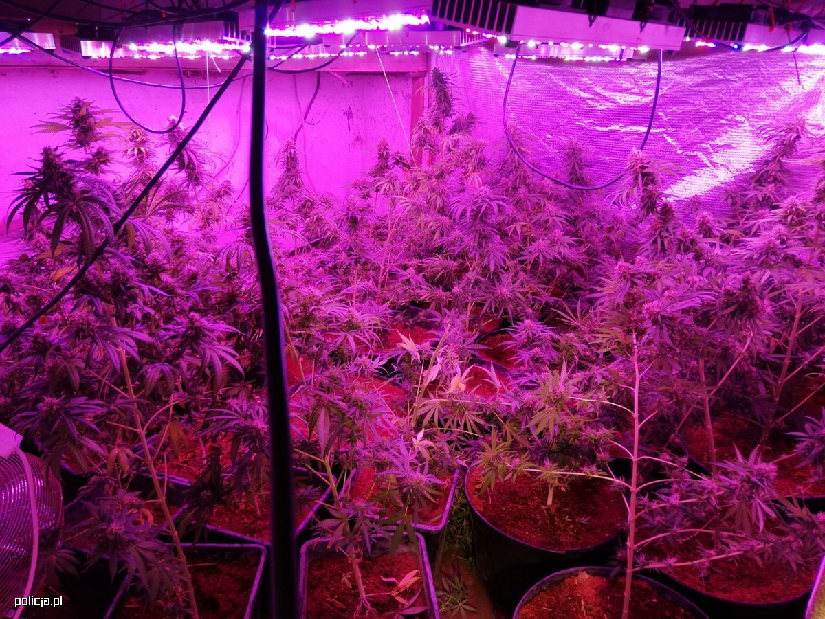 W budynku znajdowała się dobrze zaopatrzona plantacja konopi indyjskich. W doniczkach rosły metrowe krzewy. W pomieszczeniach znajdowały się też nawozy, przyrządy do uprawy, urządzenia i systemy nawadniające oraz oświetleniowe. Policjanci zabezpieczyli łącznie 95 krzewów roślin oraz gotowy susz. 38-latek został zatrzymany i dowieziony do policyjnego aresztu.