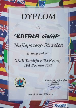 W dniach 12 - 15 sierpnia br. w stolicy Wielkopolski odbył się XXIII Międzynarodowy Turniej Piłki Nożnej IPA – Poznań 2021. W sportowej rywalizacji wzięło udział szesnaście drużyn, w tym po raz pierwszy Reprezentacja Komendy Głównej Policji w Piłce Nożnej Mężczyzn, pod czujnym trenerskim okiem Andrzeja „Pułkownika” Kuczyńskiego z Biura Komunikacji Społecznej KGP. Po zaciętych spotkaniach to jej właśnie przypadł ostateczny triumf w całym turnieju.