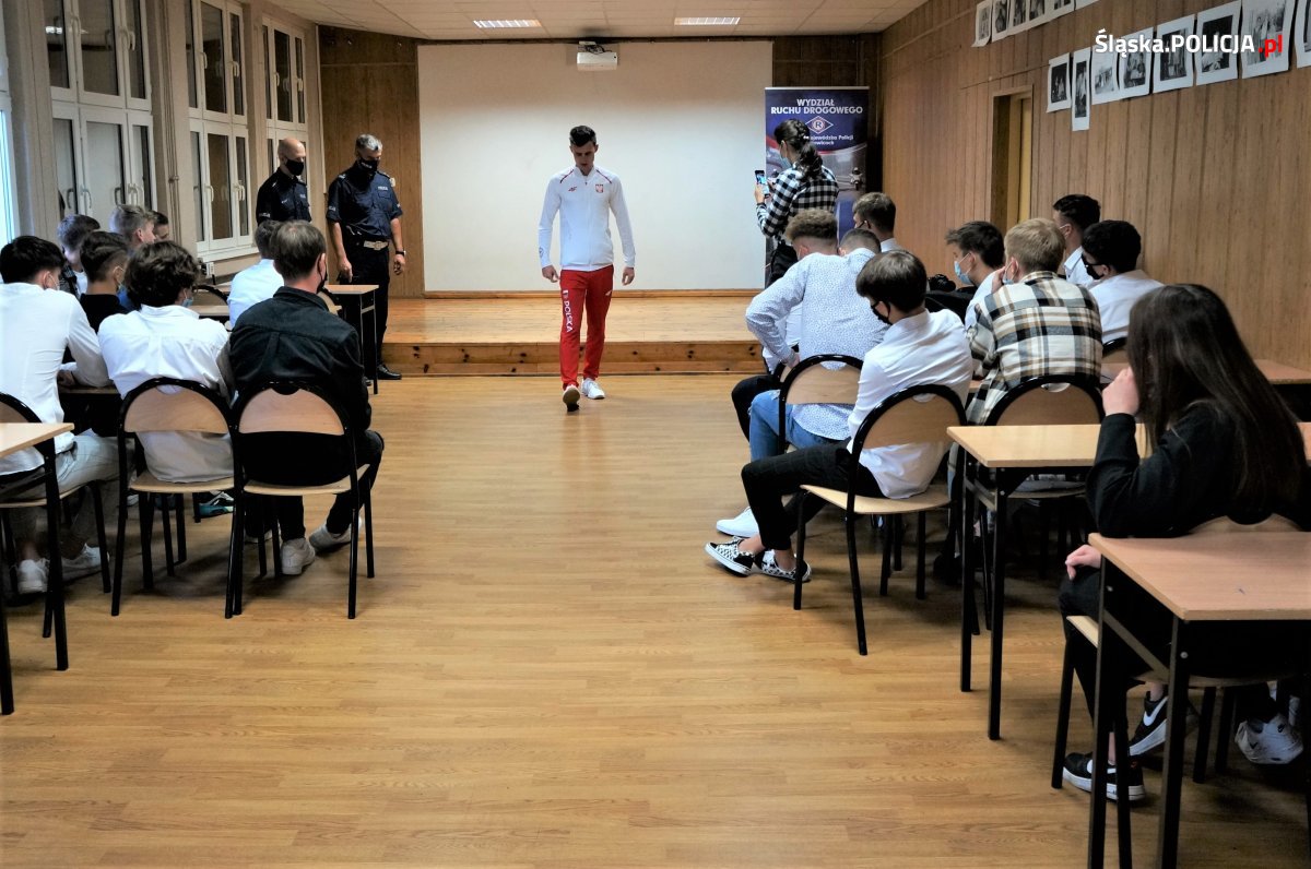 Dzisiaj policjanci z Wydziału Ruchu Drogowego Komendy Wojewódzkiej Policji w Katowicach zainaugurowali akcję „Bezpieczna droga do szkoły”. Gościem honorowym wydarzenia był mistrz olimpijski w chodzie na 50 kilometrów Dawid Tomala. Punktualnie o godzinie 8.30 mundurowi wraz ze sportowcem odwiedzili Zespół Szkół Mistrzostwa Sportowego w Chorzowie przy ulicy Harcerskiej 2. Tam spotkali się z maturzystami, którym przypomnieli podstawowe zasady ruchu drogowego i założenia kampanii "Z młodym kierowcą w drodze po doświadczenie". Następnie o godzinie 10.00 w Szkole Podstawowej nr 5 z Oddziałami Sportowymi imienia Janusza Kusocińskiego przy ulicy Józefa Ryszki 55 w Chorzowie odbyła się część główna wydarzenia inaugurującego akcję "Bezpieczna droga do szkoły". Policjanci przedstawili wówczas założenia akcji oraz przekazali najmłodszym informacje, w jaki sposób w szkołach prowadzone będą prelekcje dotyczące zasad bezpieczeństwa na drodze.