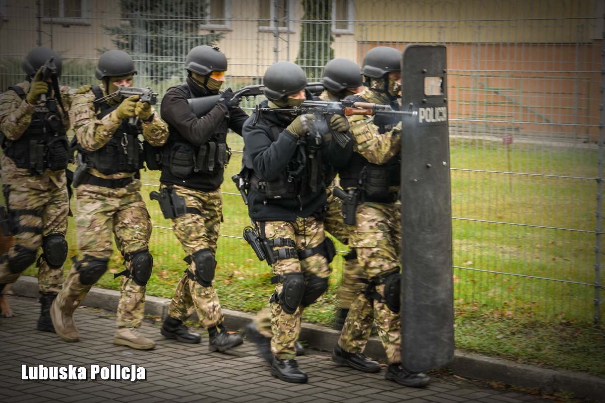 W środę (17 listopada) zielonogórscy policjanci brali udział w kolejnych ćwiczeniach sztabowych na terenie jednostki wojskowej w Czerwieńsku. Scenariusz polegał na tym, że terroryści weszli na teren jednostki i zajęli jeden z budynków. Do działań wezwana została Nieetatowa Grupa Realizacyjna z Komendy Miejskiej Policji w Zielonej Górze.
