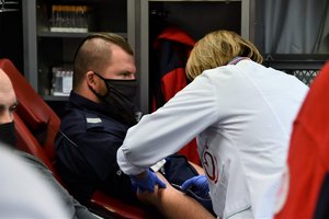 Dzisiaj na terenie katowickiej komendy wojewódzkiej 21 osób oddało prawie 9,5 litra krwi.