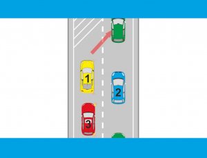 - jadąc pasem, który ma kontynuację, obowiązkowo należy wpuścić jeden pojazd włączający się na pas.