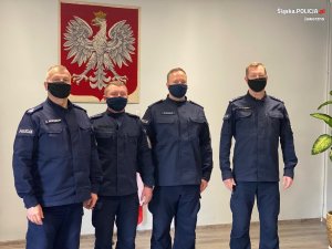 We wtorek 30.11.2021 r., w jaworznickiej komendzie została zorganizowana uroczysta zbiórka, podczas której Komendant Miejski Policji w Jaworznie mł. insp. dr Piotr Uwijała oraz I Zastępca Komendanta Miejskiego w Jaworznie podinsp. Sławomir Zagrobelny wręczyli dwóm policjantom rozkazy o wyróżnieniu pochwałą za wzorowo pełnioną służbę na granicy. Podczas przemówienia Komendant Miejski Policji podziękował za pełną oddania i poświęcenia służbę, wzorowe wypełnianie obowiązku wobec Ojczyzny i zaangażowanie w troskę o dobro Rzeczypospolitej. Komendant podkreślił, że nasza jednostka jest przygotowana do zapewnienia służby w rejonie granicy, na którą wkrótce pojadą następni stróże prawa. Uroczysta zbiórka zakończyła się złożeniem meldunku Komendantowi Miejskiemu Policji w Jaworznie przez Zastępcę Naczelnika Wydziału Prewencji podinsp. Jacka Sowę.