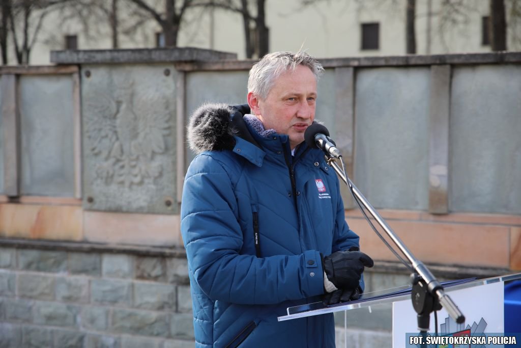 Szef świętokrzyskich policjantów dr nadinsp. Jarosław Kaleta przemawiając przywitał nowych funkcjonariuszy w szeregach formacji, gratulował wyboru i dziękował za podejmowanie tak ważnych decyzji, jaką jest wstąpienie do służby. Generał życzył satysfakcji, awansów i policyjnego szczęścia. Do powyższych życzeń przyłączył się Wojewoda Świętokrzyski Pan Zbigniew Koniusz, który w swoim przemówieniu wskazywał na trud i poświęcenie jakie niesie za sobą służba w Policji.
