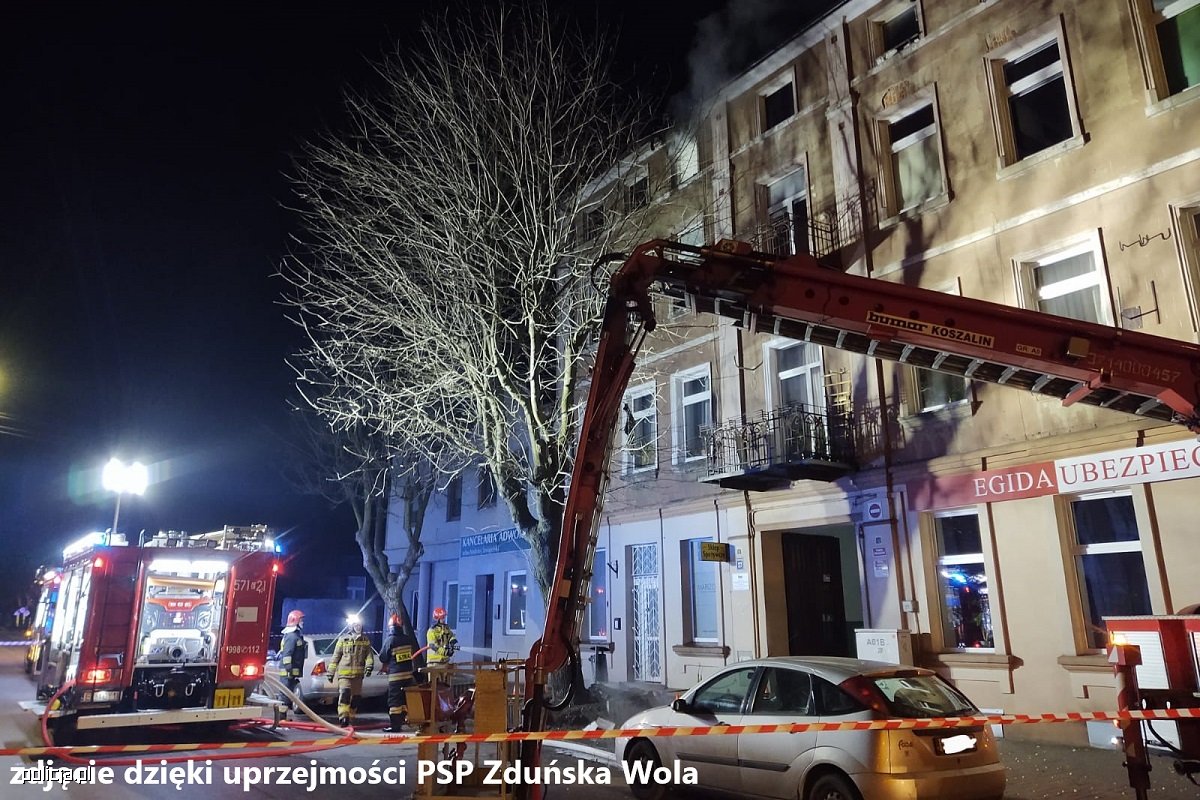 2 marca 2022 roku o godzinie 1.28 w nocy straż pożarna została wezwana do pożaru na 3 piętrze kamienicy przy ulicy Dąbrowskiego w Zduńskiej Woli. Służby zaalarmowali mieszkańcy kamienicy z naprzeciwka. W związku z dużym zadymieniem i grożącym niebezpieczeństwem strażacy za pomocą drabiny samochodowej ewakuowali 8 lokatorów. Dzięki szybkiej reakcji świadków, uratowano dorobek wielu osób i najważniejsze – ludzie życie. Po zakończeniu akcji ratowniczo-gaśniczej, strażacy wskazali podpalenie jako przyczynę tego pożaru. Do pracy przystąpili zduńskowolscy policjanci, którzy zajęli się poszukiwaniem podpalacza. Funkcjonariusze ustalili tożsamość dwóch mężczyzn odpowiedzialnych za spowodowanie pożaru. Obaj zostali zatrzymani.