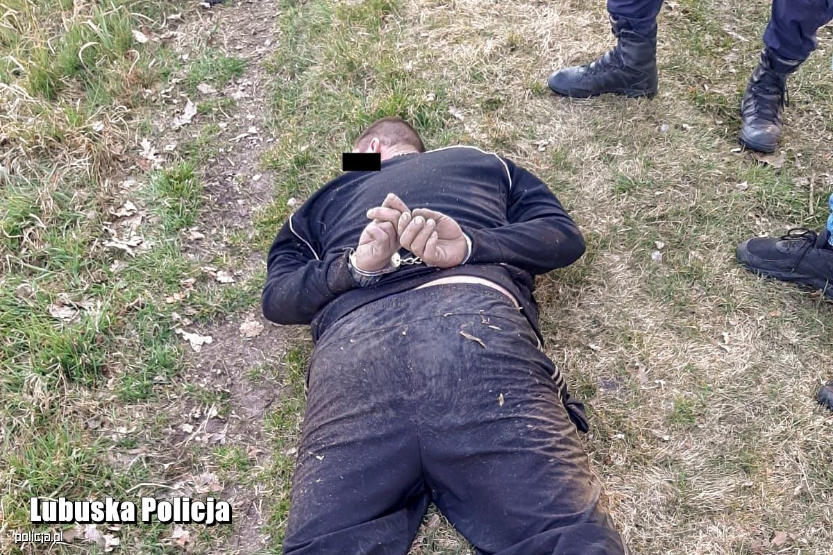 W ostatnim czasie doszło do serii kradzieży paliwa na stajach paliw. Dokonane były one różnymi pojazdami i tablicami rejestracyjnymi. Intensywne działania policjantów z Komendy Powiatowej Policji w Świebodzinie pozwoliły ustalić, że za tym procederem stoi jeden mężczyzna. Według ustaleń policjantów miał on się ukrywać w lasach. Był on poszukiwany. Miał 2 lata kary pozbawienia wolności za przestępstwa przeciwko mieniu. W wyniku działań operacyjnych, policjanci z Wydziału Kryminalnego świebodzińskiej komendy ustalili, gdzie może przebywać. To potwierdziło się. W akcji zatrzymania mężczyzny brali udział policjanci Wydziału Kryminalnego wraz z Komendantem Powiatowym Policji młodszym inspektorem Markiem Kozaneckim. Mężczyzna na widok policjantów próbował uciekać. Podczas pościgu kilkukrotnie o mało nie doprowadził do dachowania swojego pojazdu. W pewnym momencie widząc, że nie da rady zgubić ścigających go policjantów, porzucił samochód i rozpoczął ucieczkę pieszo. Tu również nie miał żadnych szans z policjantami, wobec czego desperacko rzucił się do ucieczki… wpław przez pobliski staw. Jeden z policjantów rozpoczął pogoń za nim do wody. Drugi z policjantów również skutecznie dotarł do mężczyzny. Szybko obezwładnili i zatrzymali uciekiniera. Przy nim znaleźli amfetaminę. Podczas dalszych czynności znaleziono, częściowo już rozebrany pojazd, który wykorzystywał do kradzieży paliwa. W tylnej części samochodu mężczyzna zdemontował siedzenie i wstawił zbiornik, który połączony był z drugim w bagażniku. Do niego przygotowany był otwór w nadkolu imitujący wlew paliwa. Mężczyzna przyznał się do przedstawionych mu zarzutów: dwukrotnego niezatrzymania się do kontroli przez policjantów, trzynastokrotnego prowadzenia pojazdu mechanicznego pomimo sądowego zakazu prowadzenia pojazdów mechanicznych, dziesięciu kradzieży paliwa w krótkim odstępie czasu oraz posiadania środków odurzających. Ponadto mężczyźnie została pobrana krew do badań w celu ustalenia, czy w trakcie ucieczki był pod wpływem alkoholu lub środków odurzających. Część czynów popełnił, będąc w warunkach recydywy, w związku z czym mężczyźnie grozi wyższy wymiar kary.