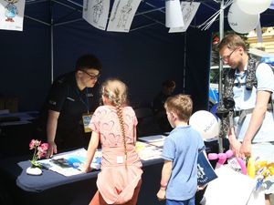 W miejscu generującym tak pozytywne wibracje nie mogło oczywiście zabraknąć stoisk Policji. Gabinet Komendanta Głównego Policji, Biuro Komunikacji Społecznej, Biuro Prewencji oraz Biuro Ruchu Drogowego Komendy Głównej Policji przygotowały dla dzieci konkursy, gry planszowe, okulary do oglądania filmów w wirtualnej rzeczywistości. Nie zabrakło pluszowych maskotek, komiksów, zabawek sportowych i edukacyjnych, słodyczy oraz innych, ciekawych gadżetów. Wiele maluchów, które deklarowały, że w przyszłości zostaną policjantami, zainteresowała walizka technika kryminalistyki o tajemniczej zawartości, a ich opiekunowie chętnie sięgali po numery „Gazety Policyjnej”, którą w domu będą mogli poczytać przy dźwiękach płyty CD wydanej z okazji 50-lecia Orkiestry Reprezentacyjnej Policji. Ale to nie wszystko. Wydział Ruchu Drogowego Komendy Stołecznej Policji zaprosił dzieci do Miasteczka Ruchu Drogowego, gdzie pod czujnym okiem funkcjonariuszy można było doskonalić umiejętności jazdy rowerem oraz wykazać się znajomością znaków drogowych.
