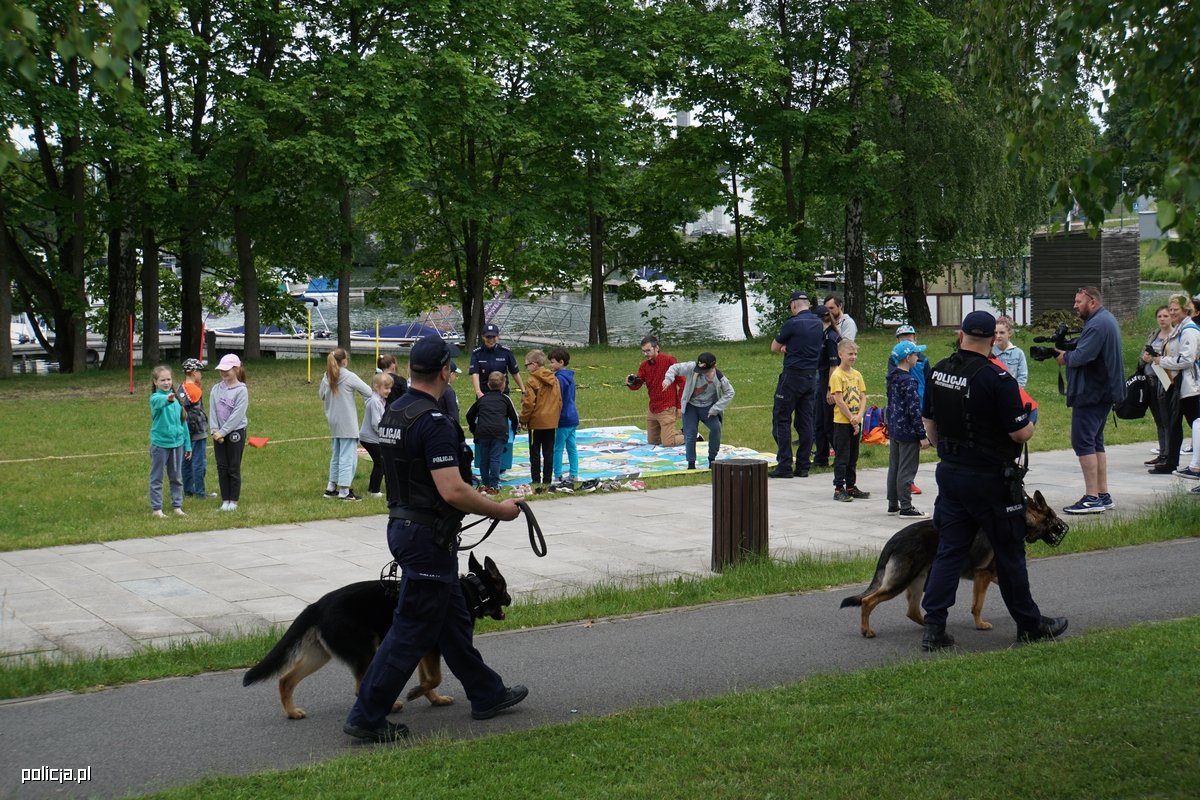 Szczególnie z myślą właśnie o dzieciach i młodzieży, które już za kilka dni rozpoczną wakacje, przygotowane zostały stoiska informacyjne, na których policjanci przekazywali wiele przydatnych informacji dotyczących m.in. bezpiecznego wypoczynku nad wodą, zasad udzielania pierwszej pomocy przedmedycznej i rodzajów służby pełnionej przez policjantów. Ponadto zainteresowani mogli z bliska przyjrzeć się policyjnym pojazdom i sprzętom służbowym. Do współpracy przy organizacji stoisk profilaktycznych zaproszono Komendę Wojewódzką Policji w Olsztynie, Wydział Zarządzania Kryzysowego Urzędu Wojewódzkiego w Olsztynie, Urząd Miasta w Olsztynie, Wody Polskie Regionalny Zarząd Gospodarki Wodnej Białystok – Rozlewnia Olsztyn, Komendę Miejską Państwowej Straży Pożarnej w Olsztynie, Wodne Ochotnicze Pogotowie Ratunkowe w Olsztynie, Urząd Żeglugi Śródlądowej w Bydgoszczy z Delegaturą w Giżycku.