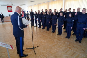 Słowa roty wybrzmiały dzisiaj (22.06.22) na sali konferencyjnej Komendy Wojewódzkiej Policji w Bydgoszczy w obecności Komendanta Wojewódzkiego Policji w Bydgoszczy nadinsp. Piotra Leciejewskiego, Jego Zastępcy insp. Artura Malinowskiego, Kapelana kujawsko-pomorskich policjantów Ks. Infułata Stanisława Kotowskiego oraz Kadry Kierowniczej kujawsko-pomorskiego garnizonu, a wypowiedziało je 53 nowo przyjętych do służby funkcjonariuszy.