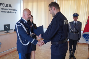 Komendant Wojewódzki Policji w Bydgoszczy nadinsp. Piotr Leciejewski przyjął dzisiaj ślubowanie od nowo przyjętych policjantów. W szeregi kujawsko-pomorskiego garnizonu wstąpiło tym razem 53 funkcjonariuszy. Wszyscy już jutro rozpoczynają kurs podstawowy, po zakończeniu którego wrócą do rodzimych jednostek, by służyć na rzecz bezpieczeństwa obywateli.