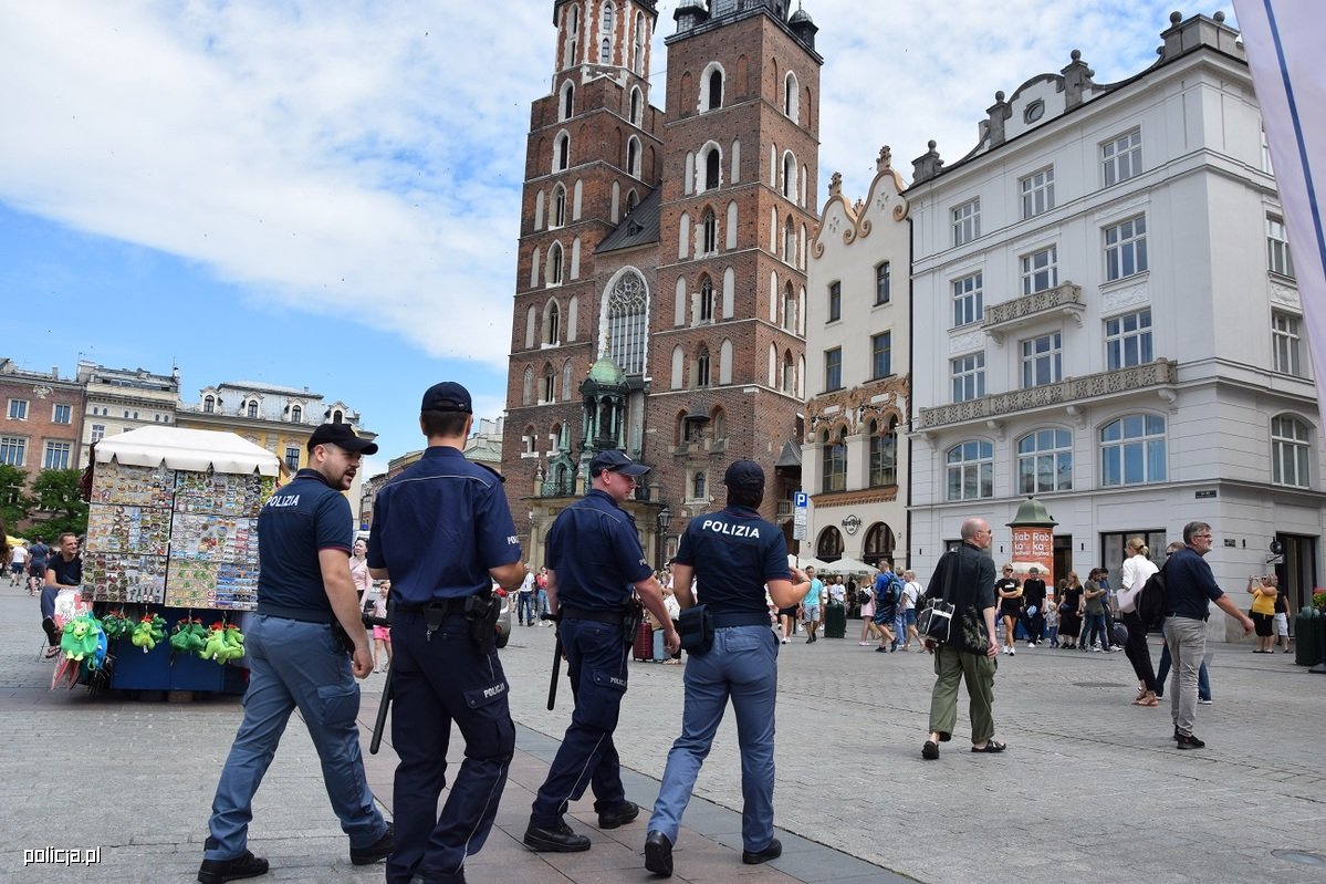 Od 18 lipca, przez dwa najbliższe tygodnie, dwoje umundurowanych funkcjonariuszy włoskiej Policji pełni służbę patrolową w Krakowie w ramach wypełniania zobowiązań wynikających z Porozumienia Wykonawczego pomiędzy Komendantem Głównym Policji Rzeczypospolitej Polskiej a Departamentem Bezpieczeństwa Publicznego Ministerstwa Spraw Wewnętrznych Republiki Włoskiej w sprawie zasad i warunków prowadzenia wspólnych patroli. Na mocy niniejszego porozumienia włoscy funkcjonariusze będą asystować i pomagać polskiej Policji podczas wspólnych patroli w Krakowie, miejscach najczęściej odwiedzanych przez włoskich turystów.