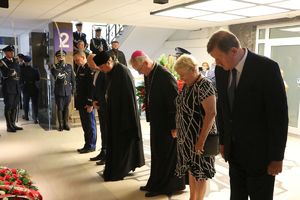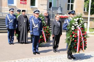 Kwiaty przed miejscem pamięci złożyli Minister Spraw Wewnętrznych i Administracji Mariusz Kamiński wraz z Komendantem Głównym Policji gen. insp. Jarosławem Szymczykiem, a także przedstawiciele duchowieństwa: ordynariusz polowy Wojska Polskiego, a jednocześnie krajowy duszpasterz Policji bp. Wiesław Lechowicz, prawosławny ordynariusz wojskowy abp Jerzy Pańkowski, ewangelicki duszpasterz Policji ksiądz Marek Twardzik oraz zastępca Komendanta Głównego Policji nadinsp. Paweł Dobrodziej. NSZZP reprezentował jego przewodniczący podkom. Rafał Jankowski.
