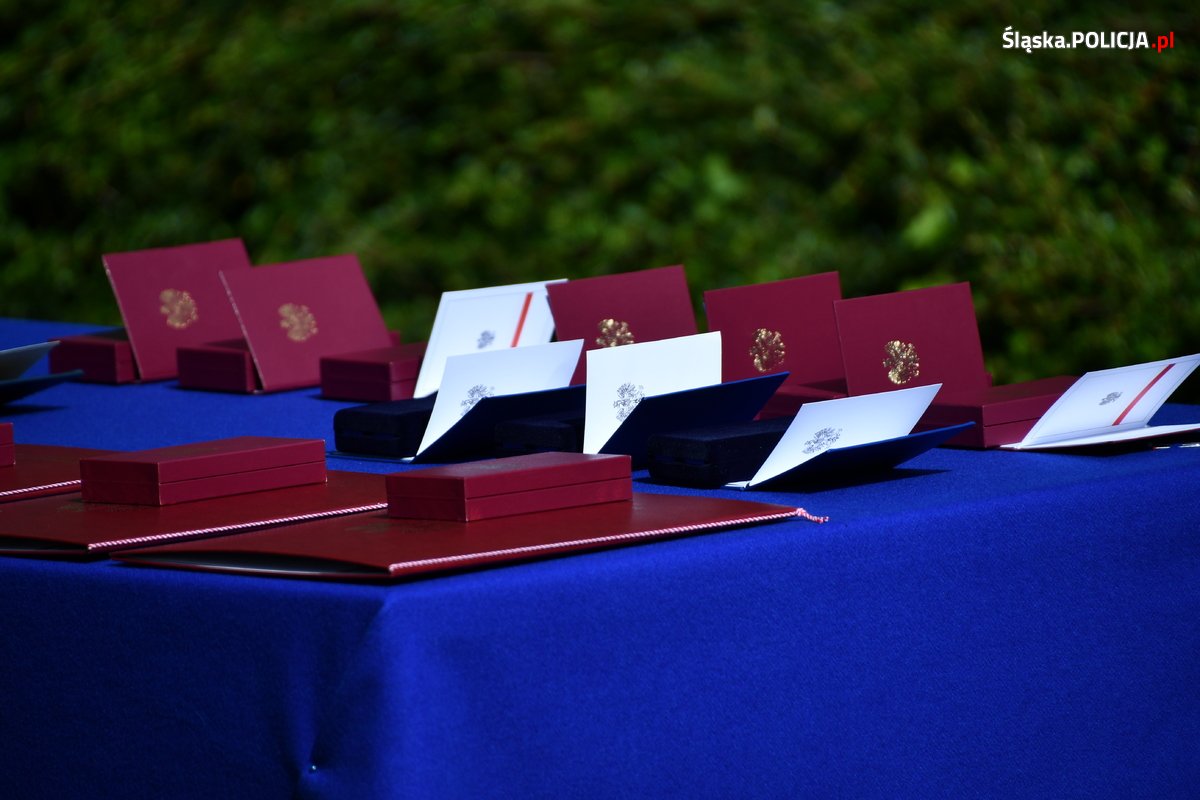 II Wicewojewoda Śląski, w asyście Komendanta Głównego Policji oraz Pierwszego Zastępcy Komendanta Wojewódzkiego Policji, wręczył odznaczenia przyznane przez Prezydenta RP Andrzeja Dudę. Brązowe Krzyże Zasługi otrzymali: mł. insp. Kinga Badeńska z Biura Międzynarodowej Współpracy Policji KGP, asp. sztab. Maciej Dziergas – Wiceprzewodniczący Zarządu Wojewódzkiego NSZZP woj. śląskiego, podinsp. Janusz Rygielski z katowickiego oddziału prewencji oraz asp. sztab. Waldemar Skotarski – kapelmistrz Orkiestry KWP w Katowicach.