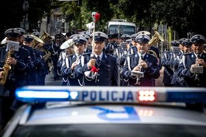Następnie uczestnicy obchodów przeszli ulicami miasta w pochodzie, który dotarł przed Grób Policjanta Polskiego na terenie Komendy Wojewódzkiej Policji w Katowicach.