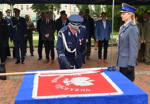 - (…) Jestem dumny, że to mnie przypadł zaszczyt odebrania Sztandaru, który jest wyrazem społecznego uznania za rzetelną i odpowiedzialną służbę funkcjonariuszy Policji oraz pracowników cywilnych. Sztandar trwale wpisał się w historię Policji i jest nadawany jednostkom Policji od 1918 roku. Jest symbolem tradycji, wierności, honoru, godności, etosu zawodowego, praworządności oraz oddania służbie. (…) Widoczny na sztandarze napis: „Bóg, Honor, Ojczyzna” mają szczególne, zobowiązujące nas wszystkich znaczenie.