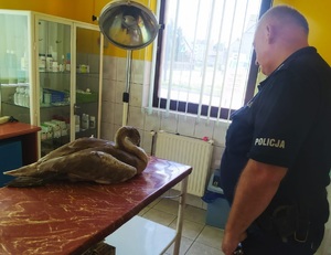 Policjanci uratowali młodego łabędzia