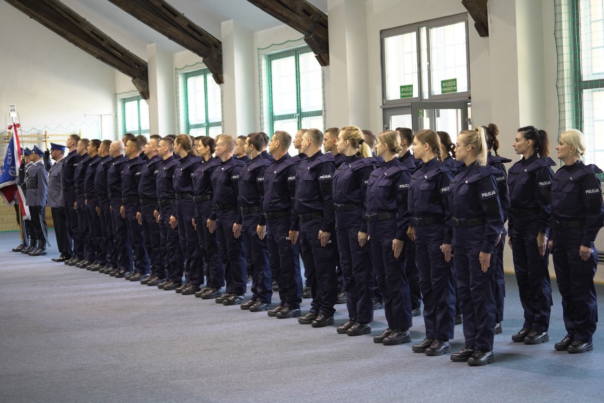"Ja, obywatel Rzeczypospolitej Polskiej, świadom podejmowanych obowiązków policjanta, ślubuję: służyć wiernie Narodowi, chronić ustanowiony Konstytucją Rzeczypospolitej Polskiej porządek prawny, strzec bezpieczeństwa Państwa i jego obywateli, nawet z narażeniem życia…” – te słowa za swoim szefem powtórzyło grono nowych policjantów z Warmii i Mazur.