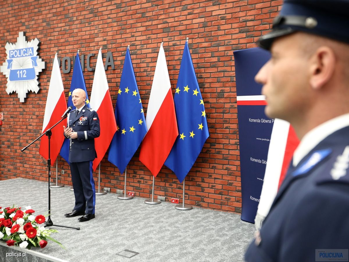 Komendant Główny Policji gen. insp. Jarosław Szymczyk dziękując wszystkim gościom przybyłym na uroczystość, podsumował zadania, które przez ostatnie 2,5 roku realizowane były przez funkcjonariuszy polskiej Policji. W swoim wystąpieniu zaznaczył, że już na początku pandemii przed formacją zostały postawione do realizacji zadania, którym bez doskonałej współpracy z przedstawicielami medycyny oraz innych instytucji trudno byłoby sprostać. Podziękował szczególnie za opiekę lekarską, jaką obdarzeni zostali funkcjonariusze oraz pracownicy cywilni Policji, którzy zachorowali podczas pandemii. Następnie wspomniał o zadaniach wykonywanych przez policjantów wraz z innymi służbami mundurowymi na granicy polsko-białoruskiej oraz o tym, jak wspólnie stawialiśmy im czoła, nie pozwalając na to, aby naruszona została integralność naszego państwa i jego granic. Podkreślił, że był to również czas intensywnej współpracy z polską prokuraturą w zwalczaniu przestępczości zorganizowanej związanej głównie z przemytem przez nasz kraj nielegalnych imigrantów. Komendant Główny Policji zaznaczył, że również bieżący rok postawił przed nami wyzwania, o których myśleliśmy, że nigdy nie będziemy musieli się z nimi zmierzyć. Wojna w Ukrainie spowodowała nie tylko napływ uchodźców, ale także sprawiła, że musieliśmy stawić czoła innym zagrożeniom, w tym m.in. cyberzagrożeniom. Postawiła też przed polską Policją dodatkowe zadania, którym musieliśmy sprostać - począwszy od wsparcia sprzętowego dla ukraińskich policjantów, po opiekę nad ich rodzinami, które przyjechały do naszego kraju szukać bezpieczeństwa. Komendant Główny Policji wyraził również wdzięczność przedstawicielom nauki za wsparcie pamięci historycznej o bohaterskich policjantach, którzy w 1939 roku zostali zamordowani w Twerze.