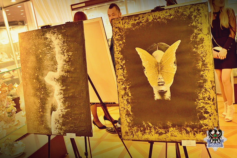 "W Obliczu Złota" - pod takim właśnie hasłem w Muzeum Porcelany w Wałbrzychu, zainaugurowana została pierwsza wystawa prac malarskich mł. asp. Kingi Mikołajskiej. Funkcjonariuszka Wydziału Prewencji z Komendy Miejskiej Policji w Wałbrzychu na co dzień prowadzi postępowania w sprawach o wykroczenia, a gdy popołudniami znajduję wolną chwilę, to sięga po pędzle i tworzy wyjątkowe obrazy. Jak mówi sama autorka: ,,potrafię wtedy bez reszty oddać się swojej pasji i przenieść na chwilę w inny wymiar, a ta wystawa jest pewnego rodzaju spojrzeniem na sztukę oczami kobiety”. Podczas wernisażu zaprezentowane zostało 26 niezwykle ciekawych dzieł i każde z nich ma swoją historię.