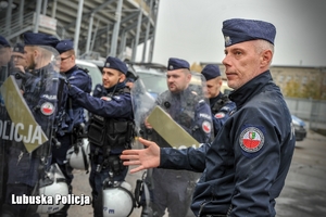Takie zostały zorganizowane przez Sztab Komendy Wojewódzkiej Policji w Gorzowie Wielkopolskim we wtorek (18 października). Mimo, że sezon największych wydarzeń mających charakter masowy jest już za nami, to lubuscy policjanci zajmujący się ich zabezpieczaniem, nie przestali pracować. Widać to było na gorzowskim stadionie imienia Edwarda Jancarza, gdzie funkcjonariusze z Nieetatowych Oddziałów Policji i Samodzielnych Pododdziałów Prewencji Policji ćwiczyli różne scenariusze zachowań kibiców oraz uczestników imprez. Doskonalone były elementy musztry, formowanie policyjnej tyraliery, skuteczność w zatrzymywaniu agresywnych napastników, ewakuowanie z tłumu rannych osób, czy użycie środków przymusu bezpośredniego. Poszczególne etapy szkolenia łączono w całość, tak aby przypominały rzeczywiste działania policyjnej operacji. Podczas kilkugodzinnych manewrów mundurowi mogli sprawdzić swe umiejętności zarówno przed stadionem, jak i na jego trybunach. Policjanci wchodzący w skład Nieetatowych Oddziałów Policji, którzy na co dzień pełnią służbę patrolową, jako dzielnicowi czy przewodnicy psów służbowych, tym razem mieli trochę inne zadanie. Pod okiem doskonałych w tej dziedzinie funkcjonariuszy Samodzielnych Pododdziałów Prewencji Policji w Gorzowie Wielkopolskim sprawdzali się w szykach zwartych, z czym poradzili sobie bardzo dobrze.