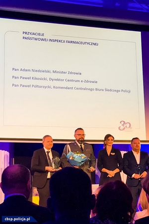 Z okazji 30-lecia Państwowej Inspekcji Farmaceutycznej odbyła się uroczysta gala, podczas której uhonorowano CBŚP statuetką “Przyjaciela Państwowej Inspekcji Farmaceutycznej”.