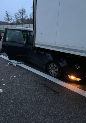 Mundurowi poruszając się prywatnym samochodem dostrzegli na prawym pasie jezdni stojący pojazd ciężarowy, pod którego naczepą znajdował się samochód osobowy marki Ford. W związku z tym funkcjonariusze natychmiastowo zatrzymali swój pojazd aby udzielić niezbędnej pomocy uczestnikom zdarzenia drogowego. Na drodze ekspresowej zauważyli nerwowo zachowującego się mężczyznę - kierowcę samochodu ciężarowego, wchodzącego na drugi pas ruchu, po którym poruszały się z dużą prędkością inne pojazdy. Policjanci sprowadzili kierującego na pobocze, po czym ustalili przebieg zdarzenia. Następnie dokonali zabezpieczenia miejsca zdarzenia i wezwali służby ratunkowe. W pojeździe marki Ford funkcjonariusze ujawili zakleszczonego w pojeździe, starszego mężczyznę, który był przytomny, jednak uskarżał się na ból w okolicach nosa. Policjanci udzielili mężczyźnie niezbędnej pomocy przedmedycznej, stabilizując kręgosłup w odcinku szyjnym, a także zadbali o jego komfort termiczny do czasu przyjazdu Załogi Ratownictwa Medycznego. Wszelkie ustalenia wynikłe w toku czynności na miejscu zdarzenia zostały przekazane dla przybyłych na miejsce policjantów z Komendy Powiatowej Policji w Gorzowie Wielkopolskim.