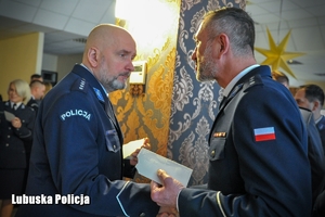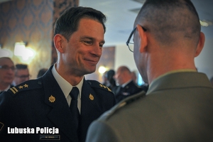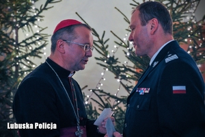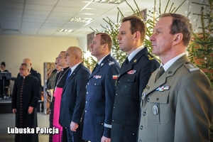 Do zgromadzonych świąteczne życzenia skierowali również Wojewoda Lubuski Władysław Dajczak: „Drodzy funkcjonariusze, chylę czoła, wyrażam wielki szacunek i składam Wam ogromne podziękowania za poświęcenie w codziennej służbie. Wasza determinacja i profesjonalizm sprawiają, że Lubuszanie są i czują się bezpiecznie. Dzieje się to bez wątpienia kosztem wielu wyrzeczeń czy częstej rozłąki z bliskimi. To sprawia, że wdzięczność wobec waszych poświęceń jest jeszcze większa. Z okazji zbliżających się Świąt Bożego Narodzenia życzę Wam, abyście sami byli bezpieczni i zawsze cali i zdrowi wracali do swych domów. Aby system wartości oparty na pomocy drugiemu człowiekowi był zawsze na tak wysokim poziomie. Niech się spełnią wasze marzenia, plany i to co sobie zamierzyliście. Dużo zdrowia i spokoju dla Was i bliskich, którzy mogą być z Was dumni”.