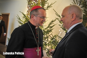 Lubuskie służby mundurowe pozostają wierne tradycji i jak co roku spotykają się przy wigilijnym stole. W czwartek (15 grudnia) w Komendzie Wojewódzkiej Policji w Gorzowie Wielkopolskim zebrali się policjanci, strażacy, strażnicy graniczni, a także wyjątkowi goście-bliscy środowisku mundurowemu. Jak każdego roku na uroczystości wigilijnej nie mogło zabraknąć Biskupa Zielonogórsko-Gorzowskiego Tadeusza Lityńskiego, który wspólnie z kapelanami poszczególnych służb, z kapelanem lubuskich policjantów księdzem kanonikiem Jerzym Piaseckim na czele, zadbał o wprowadzenie nas w atmosferę Narodzenia Pańskiego, jako najważniejszego wydarzenia tych świąt. W spotkaniu wziął udział Wojewoda Lubuski Władysław Dajczak. Zaproszenie przyjęli również przedstawiciele innych służb mundurowych, świata nauki, wymiaru sprawiedliwości, wojskowi, emerytowani policjanci i pracownicy cywilni, przedstawiciele zaprzyjaźnionych i ściśle współpracujących z lubuskimi służbami instytucji.