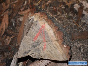 Na posesji zatrzymanego 29-latka funkcjonariusze Policji i Straży Leśnej ujawnili dużą ilość składowanego drewna, na którym nie znaleźli żadnych cech wskazujących na legalność jego pozyskania. Mężczyzna nie posiadał również dokumentów, świadczących o jego kupnie. Dodatkowo mundurowi ujawnili szlaban, który został skradziony kilka lat temu z jednej z leśnych dróg lubińskiego nadleśnictwa. Jak się okazało, podejrzany większą część swojego łupu sprzedał już jako opał.