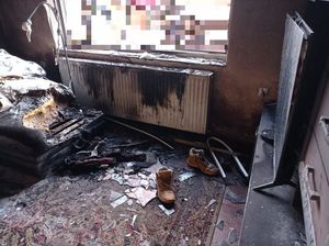 Policjanci przy użyciu gaśnic z pojazdów służbowych stłumili także ogień, aby zapobiec jego dalszemu rozprzestrzenianiu się. Gdy zadymienie ustępowało, funkcjonariusze zauważyli spalone i stopione elementy wyposażenia pokoju oraz przewrócony piecyk gazowy z podłączoną butlą z gazem. Funkcjonariusze odłączyli dopływ gazu i wynieśli piecyk na zewnątrz, a kilka chwil później na miejsce przyjechały jednostki Państwowej i Ochotniczej Straży Pożarnej, których funkcjonariusze dogasili pożar oraz sprawdzili cały budynek.