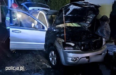 Zapalił się samochód. Policjanci gasili pożar do czasu przyjazdu strażaków