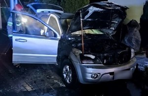 Lęborscy policjanci gasili pożar samochodu, który zapalił się na prywatnej posesji. Mundurowi nie dopuścili do tego, by do czasu przyjazdu straży pożarnej ogień zajął budynek i inne pojazdy znajdujące się w pobliżu miejsca zdarzenia.