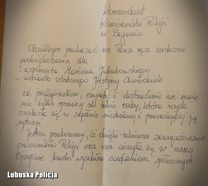 W czwartek, 13 kwietnia 2023 roku do Komendanta Powiatowego Policji w Żaganiu inspektora Marcina Sapuna wpłynęło podziękowanie od mężczyzny, który był osobą odpowiedzialną za spowodowanie zdarzenia drogowego. Podziękowania zostały skierowane dla aspiranta Mariusza Jakubowskiego oraz sierżanta sztabowego Justyny Chwiedziuk z Wydziału Prewencji Komendy Powiatowej Policji w Żaganiu. Jak zaznaczył autor, policjanci dostrzegli w nim nie tylko sprawcę, ale także osobę, która nagle znalazła się w trudnej dla niego sytuacji. Policjanci okazali mu szacunek i empatię, profesjonalnie wykonując swoje obowiązki służbowe.