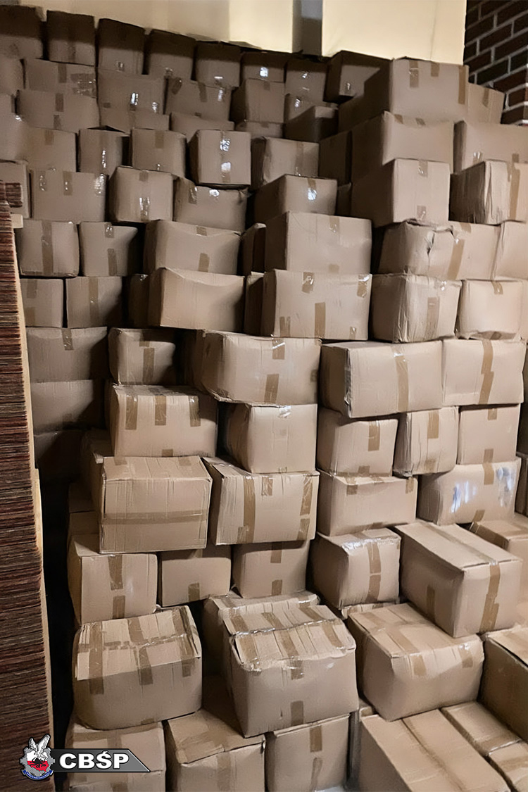 Podczas jednej z akcji funkcjonariusze ujawnili kilka tysięcy kartonów zawierających maseczki i rękawiczki jednorazowe. Towar należał do jednego z podejrzanych.