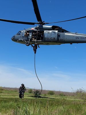 Za nami kolejny dzień szkolenia mołdawskich funkcjonariuszy z FULGER, którzy pod czujnym okiem policyjnych instruktorów z CPKP „BOA” oraz z wykorzystaniem jednego z policyjnych śmigłowców typu Black Hawk, ćwiczą swoje umiejętności przed planowanym na początku czerwca Szczytem Europejskiej Wspólnoty Politycznej w Mołdawii.