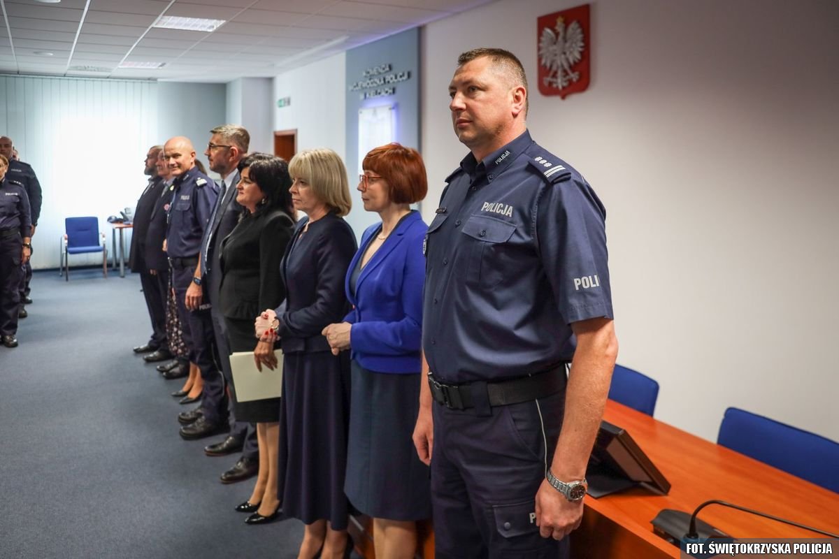 W dzisiejszej uroczystości oprócz uczestników zawodów udział wzięli: Komendant Wojewódzki Policji w Kielcach nadinsp. dr Jarosław Kaleta wraz ze swoim zastępcą insp. Andrzejem Patrzałkiem, komendantami wszystkich powiatowych jednostek oraz Komendy Miejskiej Policji w Kielcach oraz naczelników wydziałów pionu kryminalnego. Nie zabrakło również Prokuratora Okręgowego w Kielcach Pana Dariusza Dryjasa, Zastępcy Prokuratora Okręgowego w Kielcach Pani Ewy Nowak, szefowej Prokuratury Rejonowej Kielce Wschód Pani Beaty Zielińskiej – Janaszek, szefowej Prokuratury Rejonowej Kielce Zachód Pani Katarzyny Kasowskiej – Pedrycz, Rzecznika Prasowego Wojewody Świętokrzyskiego Pani Marzeny Chodakowskiej oraz wiceprzewodniczących Zarządu Wojewódzkiego NSZZ Policjantów woj. Świętokrzyskiego - Mirosława Jędrzejczyka oraz Marcina Czarnotę. Warto podkreślić, iż panie prokurator z Prokuratury Rejonowej Kielce Wschód oraz Zachód czynnie uczestniczyły w zawodach, zasiadając w komisji i oceniając pracę policjantów.