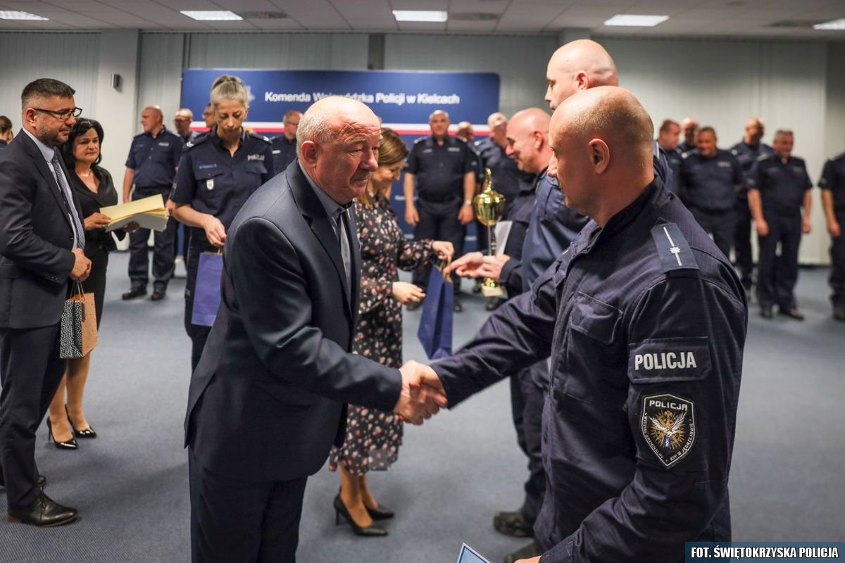 Fundatorem wręczanych nagród był Wojewoda Świętokrzyski Pan Zbigniew Koniusz oraz Prokurator Okręgowy w Kielcach Pan Dariusz Dryjas. Puchary ufundowane zostały przez Zarząd Wojewódzkiego NSZZ Policjantów woj. Świętokrzyskiego, natomiast Komendant Wojewódzki Policji w Kielcach nadinsp. dr Jarosław Kaleta oprócz gratulacji laureatom przekazał nagrody finansowe.
