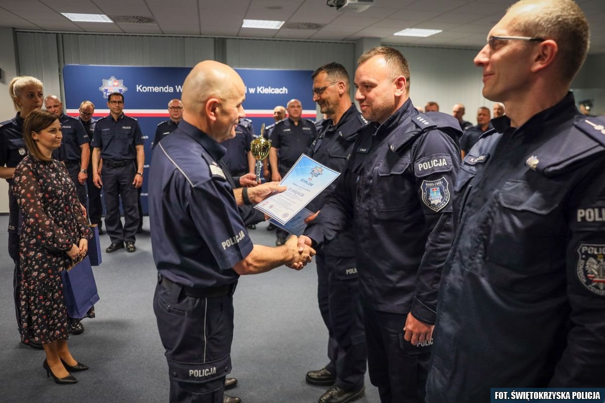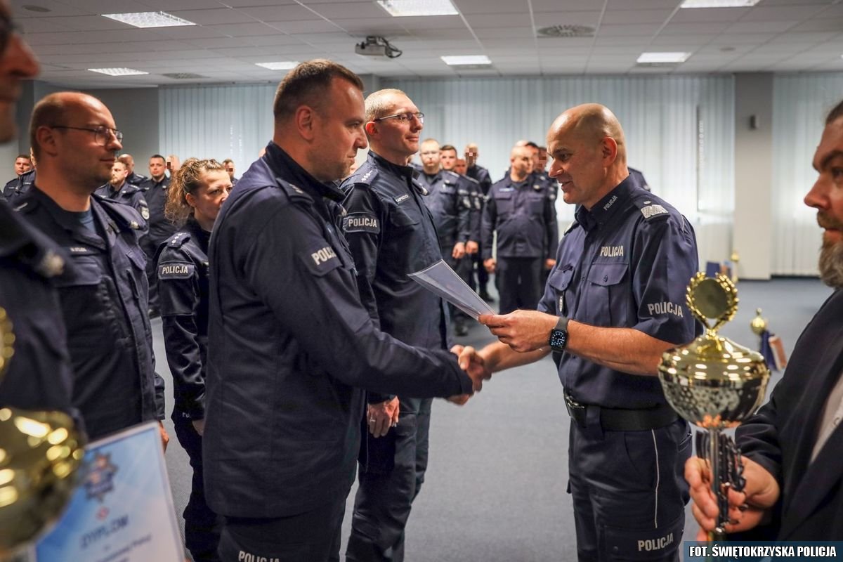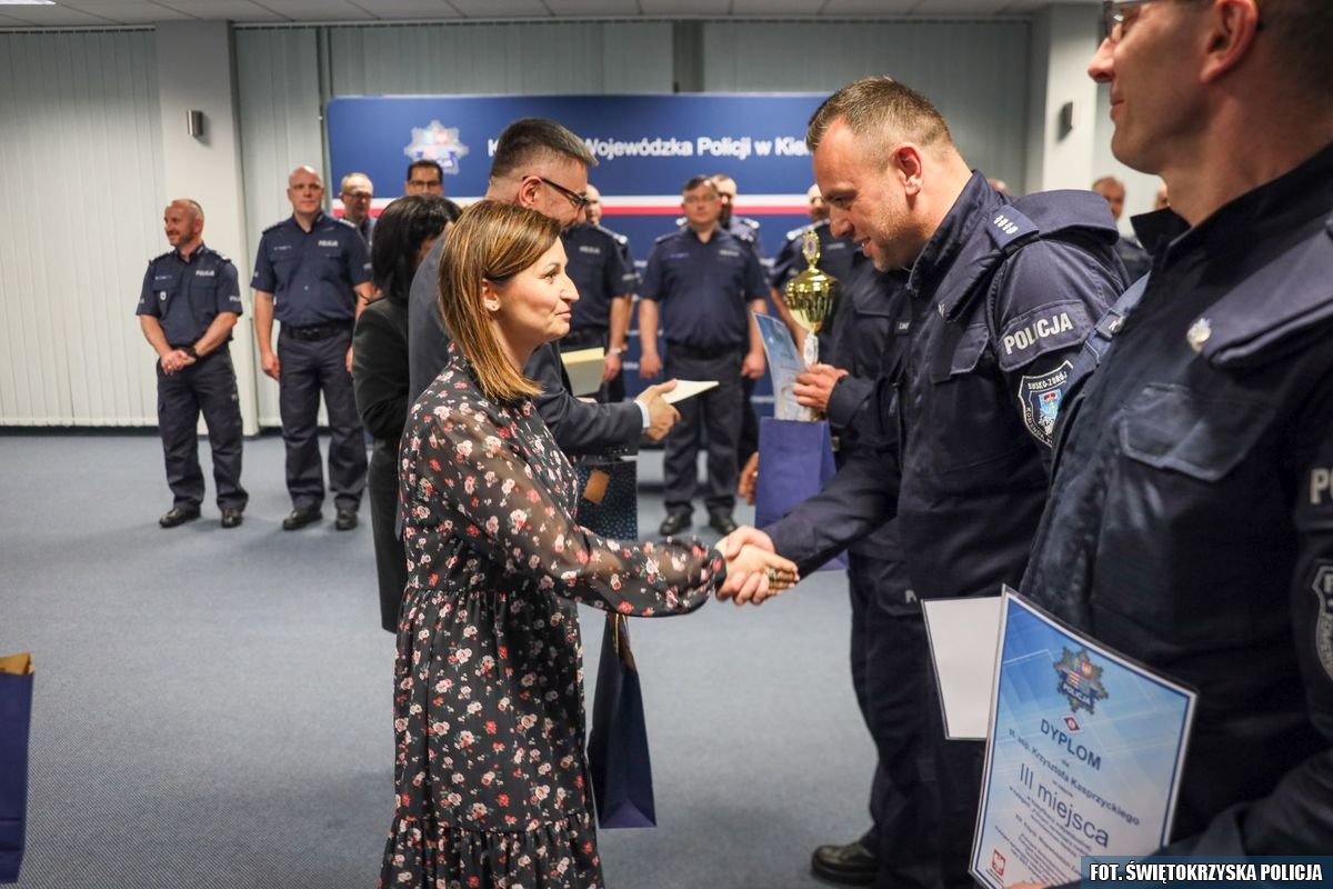 Dziś poznaliśmy najlepszych policjantów pionu kryminalnego, którzy uczestniczyli w dwudniowych rywalizacjach. Zawody te w województwie świętokrzyskim zostały zorganizowane po raz dziewiętnasty. Finaliści otrzymali gratulacje i nagrody z rąk Komendanta Wojewódzkiego Policji w Kielcach nadinsp. dr Jarosława Kalety, Prokuratora Okręgowego w Kielcach Pana Dariusza Dryjasa, Rzecznika Wojewody Świętokrzyskiego Pani Marzeny Chodakowskiej oraz wiceprzewodniczących Zarządu Wojewódzkiego NSZZ Policjantów woj. Świętokrzyskiego - Mirosława Jędrzejczyka i Marcina Czarnotę.