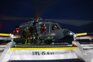 Ci pierwsi, zanim wyruszyli w kierunku platformy, musieli dokładnie zapoznać się z tą ogromną stalową konstrukcją oraz monitorować panujące na morzu warunki pogodowe. Dopiero wówczas mogli rozpocząć działania. – Przy takich manewrach na pełnym morzu jesteśmy zdani wyłącznie na siebie – mówi insp. pil. Robert Sitek, Naczelnik Zarządu Lotnictwa Policji GSP KGP i dodaje: - Pilotom podczas manewrów zawsze pomaga ktoś z załogi. W przypadku Black Hawka jest to tzw. crew chief, czyli technik pokładowy. To on wychyla się z pokładu śmigłowca i naprowadza pilota na lądowisko. Tu liczy się przede wszystkim zegarmistrzowska precyzja, tym bardziej, że miejsce do manewrów na platformie jest bardzo ograniczone ze względu na infrastrukturę. Maszyna jest wyposażona w wirnik o średnicy nieco ponad 16 metrów, a z pracującym wirnikiem ma długość prawie 20 metrów. Zapasu, żeby zmieścić się na lądowisku, zostaje nam więc niewiele.