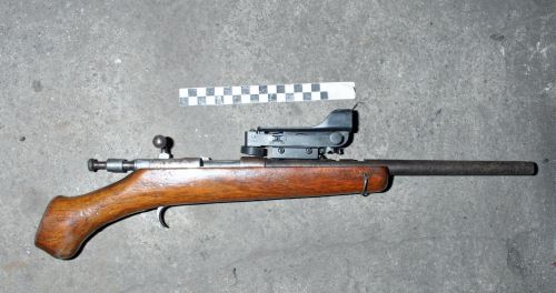 Wczoraj podczas przeszukania pomieszczeń mieszkalnych i gospodarczych odnaleźli ukrytą w piwnicy broń: pistolet maszynowy z czasów II wojny światowej, obrzyn z celownikiem na baterie, 19 sztuk amunicji