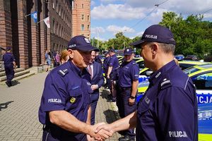 29 czerwca br. na parkingu przy siedzibie Komendy Wojewódzkiej Policji we Wrocławiu odbyło się spotkanie związane z przekazaniem 9 nowych pojazdów służbowych dla dolnośląskich policjantów. Jego gospodarzem był I Zastępca Komendanta Wojewódzkiego Policji we Wrocławiu insp. Robert Frąckowiak, a uczestniczyli w nim m.in.: Pani Małgorzata Hasiewicz - Dyrektor Generalny Urzędu Wojewódzkiego we Wrocławiu, Pan Łukasz Kasztelowicz - Prezes Zarządu WFOŚiGW we Wrocławiu, Pan Bartłomiej Wiązowski - Wiceprezes Zarządu WFOŚiGW we Wrocławiu oraz przedstawiciele mediów i policjanci, którzy odebrali klucze do nowych samochodów.
