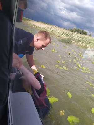 Rajgrodzcy wodniacy dbają o bezpieczeństwo osób wypoczywających nad wodą. O tym, jak bardzo ich obecność jest potrzebna przekonali się turyści z Białegostoku. W niedzielne popołudnie (2.07.2023) mundurowi patrolowali jezioro Rajgrodzkie, na którym panowały trudne warunki pogodowe, z powodu porywistego wiatru. W pewnym momencie wśród trzcin zauważyli grupę osób wzywających pomocy. Natychmiast ruszyli na ratunek. Z daleka zobaczyli deski SUP, a w wodzie dwóch turystów. Policyjni wodniacy wciągnęli ich na pokład swojej łodzi i bezpiecznie przetransportowali razem z resztą grupy do brzegu. Sytuacja była groźna, ponieważ osoby znajdujące się w wodzie traciły siły, a porywisty wiatr i wysoka fala uniemożliwiały samodzielny powrót na brzeg. Na szczęście każdy z członków grupy miał założoną kamizelkę asekuracyjną.