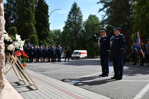 Wieńce pod tablicami złożyli: Komendant Wojewódzki Policji w Rzeszowie nadinsp. Dariusz Matusiak oraz Zastępca Komendanta Wojewódzkiego Policji w Rzeszowie - mł. insp. Jacek Juwa.