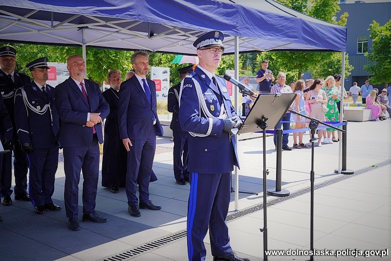Do policjantów zwrócił się Wicewojewoda Dolnośląski Jarosław Kresa, który w kilku słowach pogratulował dobrze dokonanego wyboru zawodu pozwalającego rozwijać się w wielu obszarach, dającego satysfakcję i jakże ważnego dla mieszkańców Dolnego Śląska, a także podziękował za dobrą współpracę z dolnośląskimi policjami i ich działania przekładające się bezpośrednio na bezpieczeństwo.