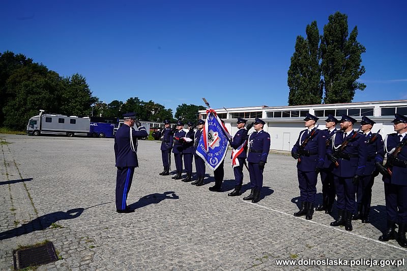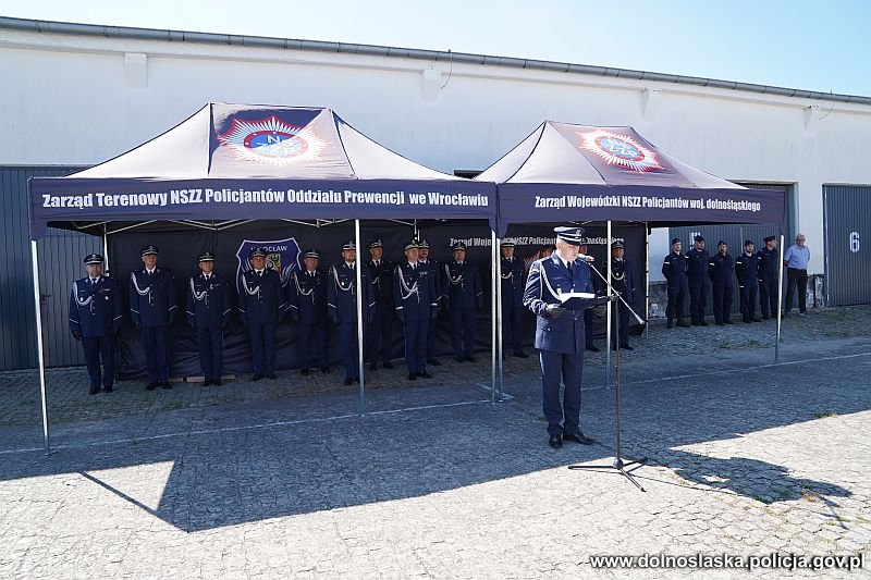 Uczestników uroczystej zbiórki powitał gospodarz wydarzenia Dowódca Oddziału Prewencji Policji we Wrocławiu mł. insp. Remigiusz Sawicki. W swoim wystąpieniu podziękował policjantom za ich zaangażowanie i profesjonalizm wykazywane w codziennej służbie. Wyraził także wdzięczność za to, że pomimo wielu obowiązków, funkcjonariusze znajdują czas, aby angażować się w inicjatywy i wydarzenia charytatywne, honorowe krwiodawstwo, a także działania profilaktyczne z dziećmi oraz młodzieżą.