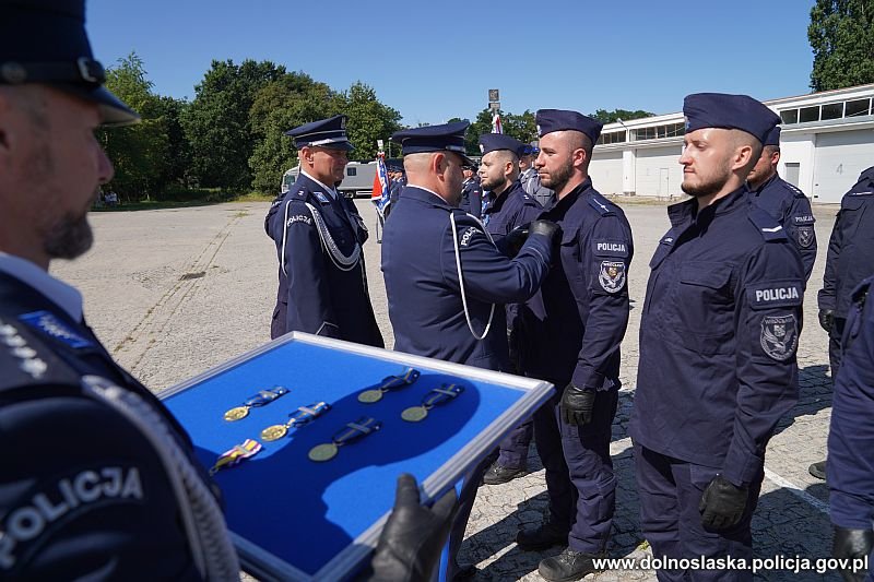 Święto Policji to data szczególna dla policjantów. To czas awansów, nominacji, odznaczeń oraz podziękowań dla funkcjonariuszy i pracowników Policji, ale także dla tych, z którymi mundurowi na co dzień współpracują. W związku z tą wyjątkową okazją w poszczególnych jednostkach i komórkach organizacyjnych odbywają się uroczyste zbiórki. Wczoraj obchody Święta Policji odbyły się w siedzibie Oddziału Prewencji Policji we Wrocławiu. Podczas tej uroczystości, w której uczestniczył Komendant Wojewódzki Policji we Wrocławiu nadinsp. Dariusz Wesołowski wraz ze swoim Zastępcą insp. Norbertem Kurendą, akty mianowania na wyższy stopień służbowy oraz wyróżnienia odebrali funkcjonariusze wrocławskiego oddziału prewencji oraz legnickiego samodzielnego pododdziału prewencji.