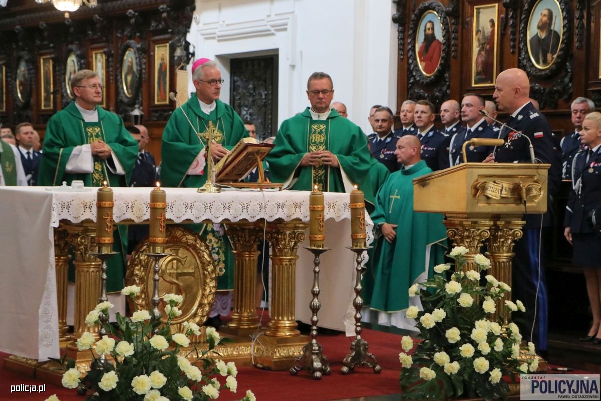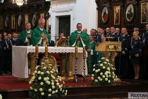 Mszy św. odprawionej przez kapelanów policyjnych i księży z ordynariatu przewodniczył Ordynariusz Polowy Wojska Polskiego bp Wiesław Lechowicz, który jest jednocześnie Delegatem Konferencji Episkopatu Polski do spraw Duszpasterstwa Policji. W Eucharystii uczestniczyło kierownictwo formacji na czele z Komendantem Głównym Policji gen. insp. Jarosławem Szymczykiem oraz jego zastępcami: nadinsp. Dariuszem Augustyniakiem, nadinsp. Pawłem Dobrodziejem i nadinsp. Romanem Kusterem. Obecni byli komendanci wojewódzcy, dyrektorzy biur KGP, komendanci szkół oraz przedstawiciele stowarzyszeń i fundacji działających w środowisku policyjnym oraz liczna rzesza pracowników Policji wraz z rodzinami.